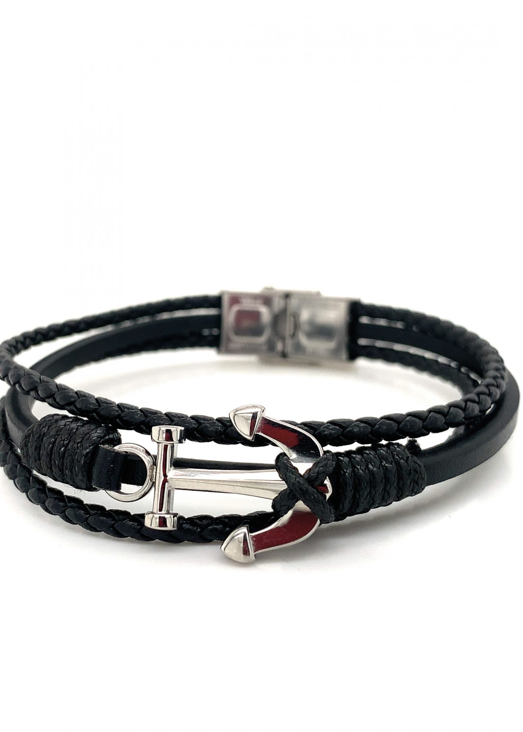 bracciale Uomo In Pelle E Ancora In Acciaio